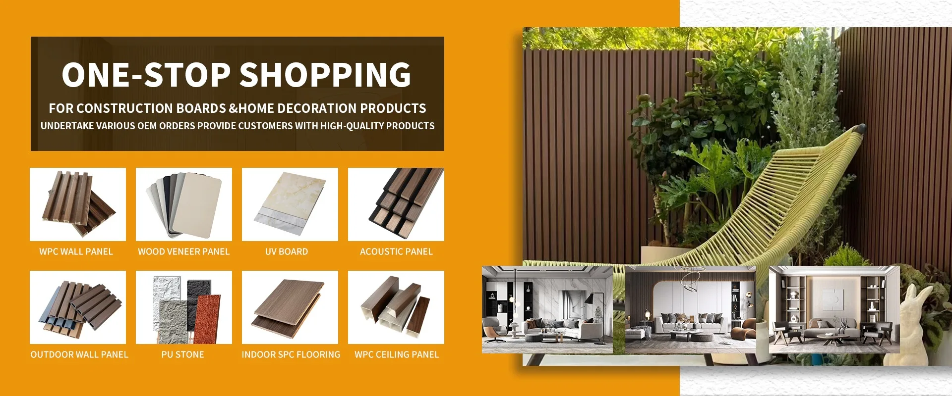 Our main products include wood veneer、 wpc wall panels、 wpc ceiling 、pu stones、spc floor、wallpaper and so on. Our products cover the whole country and are exported to countries and regions such as the Middle East and Africa.